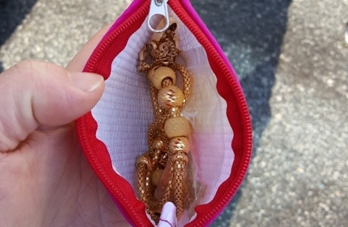 지갑 안에는 색동 누빔 주머니도 들어있었다. 그 속에는 목걸이, 팔찌, 반지 등 금 20돈(구매비용 기준 600만원상당)이 들어있었다.