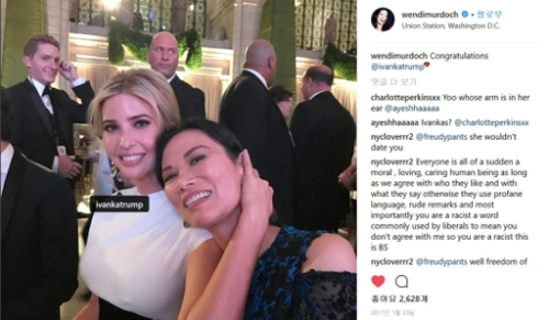 | 웬디 덩 머독(오른쪽)이 도널드 트럼프 미국 대통령의 장녀 이방카와 함께 찍은 사진. 웬디 덩 머독 인스타그램 캡처 |