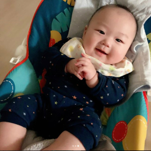 22일 송지수는 자신의 인스타그램에 "4개월과 5개월사이 #장하다"라는 글과 함께 아들 장하다 군의 사진을 올렸다.