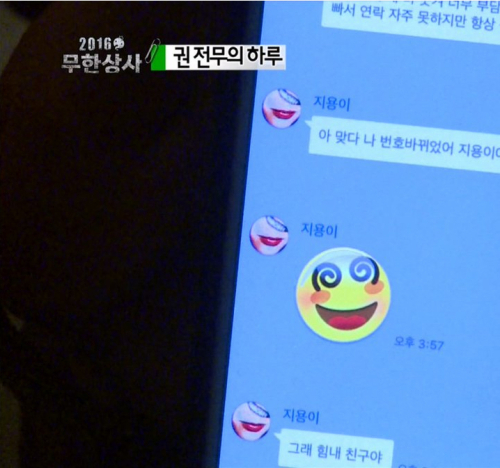 함께 공개된 사진 속 정형돈은 지드래곤을 향해 "너는 이모티콘이 너무 없다"며 서운한 기색을 표했다. 지드래곤은 "그런 거 어떻게 하는지 잘 몰라요"라고 멋쩍은 듯 답했다.