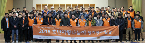 호반 사회공헌국 관계자는 “추운 날씨지만 올해 첫 봉사활동에 참여한 임직원들의 표정이 모두 밝았다”며 “2018년에도 소외된 이웃들과 지역 사회를 위해 다양한 활동을 진행할 예정”이라고 말했다.