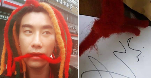 그러나 이 팬은 세정력에 비해 털 빠짐이 너무 심해 수세미로 쓸 수가 없다며 다른 쓰임새를 제안했다. 빨간 머리카락을 동그랗게 말아 귀걸이 침을 부착해 매우 ‘힙’한 귀걸이로 재탄생 시킨 것. 팬은 귀걸이의 착용 샷까지 공개하며 인증의 정점을 찍었다.