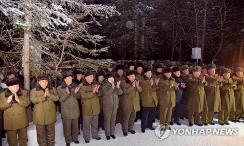 | 김정일 북한 국방위원장의 생일을 앞두고 지난 12일 `백두산 밀영 결의대회`가 열렸다고 조선중앙통신이 13일 보도했다. |