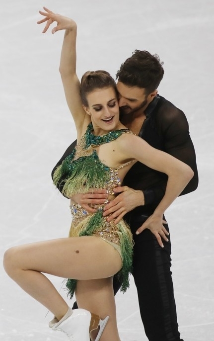 19일 강릉아이스아레나에서 열린 2018 평창 동계올림픽 피겨스케이팅 아이스댄스 쇼트댄스에서 프랑스의 가브리엘라 파파다키스-기욤 시즈롱이 연기를 하고 있다. 사진=연합뉴스