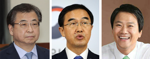 | 문재인 대통령의 대북 특사 후보로 유력하게 거론되는 서훈 국가정보원장, 조명균 통일부 장관, 임종석 대통령 비서실장(왼쪽부터). |