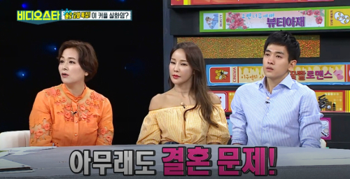 | (왼쪽 부터) 유금란 씨와 미나, 류필립 커플이 '비디오스타'에 출연한 모습. |
