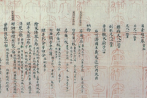 | 동대사에 헌납된 쇼무천황 관련 물건의 목록인 국가진보장에는 ‘적칠관목주자’가 “의자왕이 내대신에게 하사한 것”이라는 설명이 담겨 있다. 오른쪽 사진은 적칠관목주자와 비슷한 형태인 ‘적칠문관목주자’. |