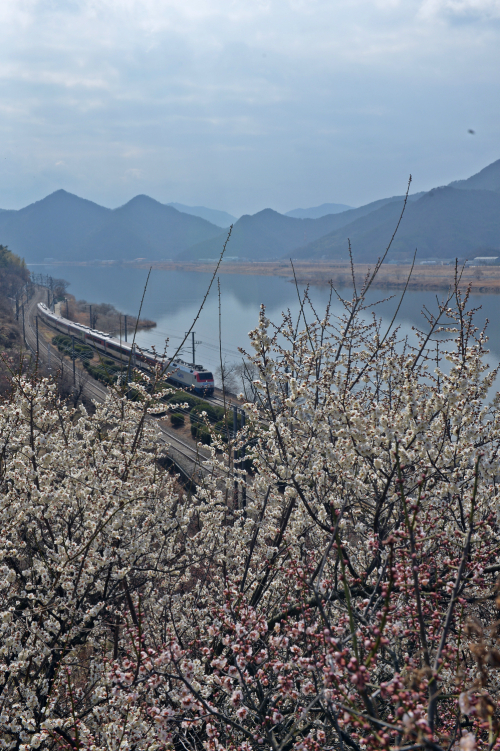 | 경남 양산 순매원에선 매화와 함께 어우러진 낙동강과 그 사이에 놓인 기찻길을 질주하는 기차의 모습을 한 폭에 담을 수 있다. 하얀 매화 사이로 들어오는 기차를 보면 봄이 품 안으로 들어오는 듯한 기분을 느낄 수 있다. |