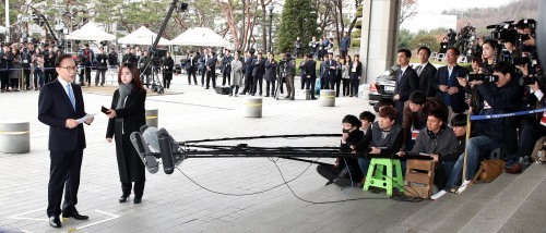 2013년 2월24일 퇴임한 후 5년17일, 1844일 만에 검찰 포토라인에 선 이 전 대통령은 이날 이례적으로 6문장의 긴 대국민 입장문을 냈다.