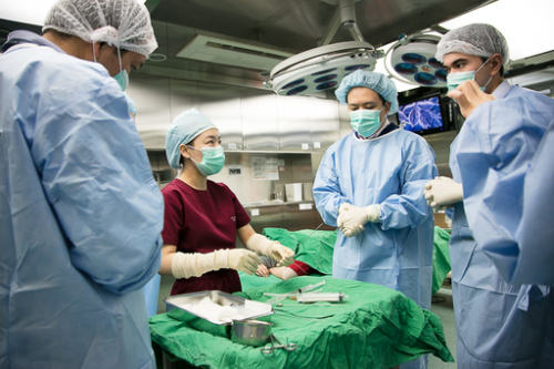| 지난해 5월 김정은 대표원장이 ‘AAAM학회 라이브 워크숍’에서 지방흡입주사시술인 ‘람스(LAMS)’ 서저리를 진행하는 모습. |
