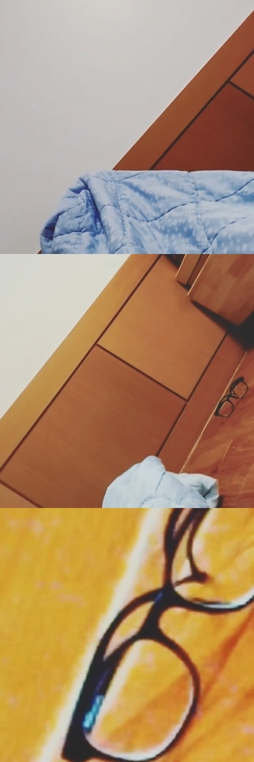영상에선 바닥에 놓인 이불과 안경이 포착되는가 하면 국민체조 음악에 맞춰 아무렇게나 움직이는 손, 창틀에 놓인 음료가 보인다.