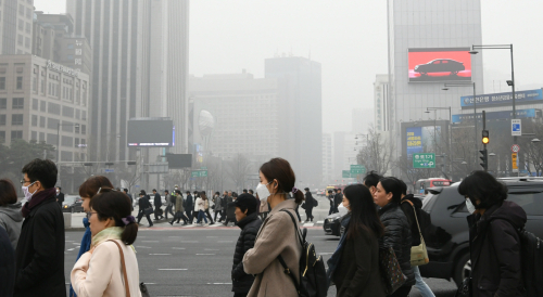 | 서울에 미세먼지 비상저감조치가 발령된 26일 오전 서울 광화문사거리에서 시민들이 마스크를 쓴 시민들이 출근길을 재촉하고 있다. 남정탁 기자 |