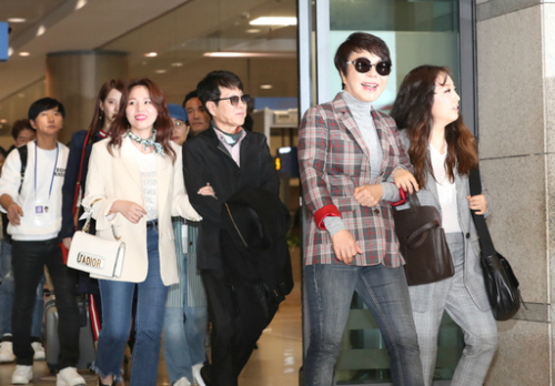 | 남측예술단 인천공항 귀환 지난 1일과 3일 두 차례 평양공연을 성공적으로 마친 조용필, 최진희, 정인 등 남북평화협력기원 남측예술단이 4일 오전 인천공항에 도착해 출국장을 나서고 있다. 영종도=평양공연 사진공동취재단 |