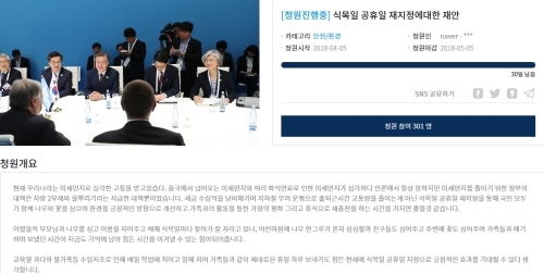 5일 청와대 홈페이지( www.president.go.kr) 국민청원 및 제안 게시판에는 '식목일 공휴일 재지정에 대한 제안' 등의 제목으로 식목일 관련 청원글이 여러 건 올라왔다.