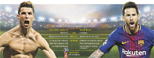 세계 축구팬들은 10년 넘게 한 가지 주제를 놓고 격론을 벌이고 있다. 바로 크리스티아누 호날두(33·레알 마드리드)와 리오넬 메시(31·FC바르셀로나) 중 누가 더 뛰어나냐이다. 2008년부터 축구계 최고 영예인 발롱도르 트로피를 5차례씩 나눠 가진 두 선수의 양강 체제가 이어졌지만, 올해는 한 선수가 균형을 깨게 된다. 이 때문에 두 선수 이름의 첫 글자를 따 이른바 ‘메호대전’이라 칭하는 국내 팬들의 갑론을박도 치열하다. 호날두는 천진난만하게 웃는 모습이 친근하다고 해서 ‘우리 형’으로, 메시는 이름과 ‘신(神)’을 합쳐 ‘메신’이라는 별명으로 불린다.
