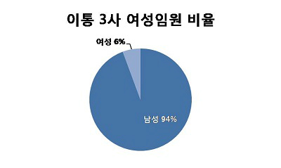 통신업계 관계자는 "전기, 통신 등 기술직이 많은 업군이라 어쩔 수 없는 면이 있다"면서 "마케팅이나 다른 직군은 여성의 비율이 높은 경우도 있다"고 설명했다.