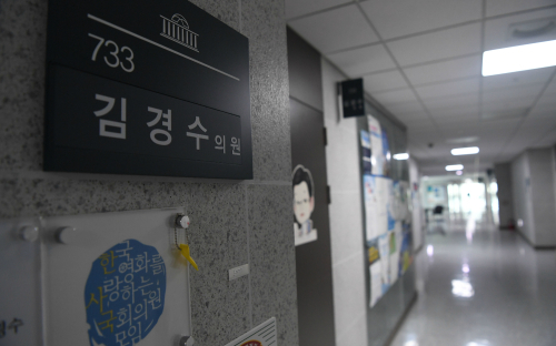 | 더불어민주당 김경수 의원이 댓글조작에 연루됐다는 의혹이 제기되며 파문이 커지는 가운데 16일 오후 서울 여의도 국회 의원회관 김경수 의원 사무실이 출근한 직원 없이 문이 닫혀 있다. 허정호 선임기자 |