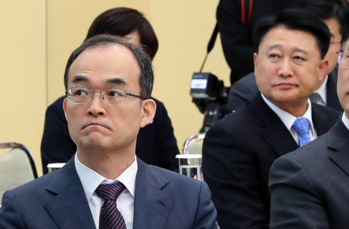 | 문무일 검찰총장(왼쪽)과 이철성 경찰청장이 지난 18일 오후 청와대에서 열린 제2차 반부패정책협의회에 참석하고 있다. 연합뉴스 |