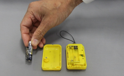 | 폭발을 일으킨 방범 버저. 과열을 방지하는 스위치가 작동하지 않아 폭발한 것으로 추정됐다. |
