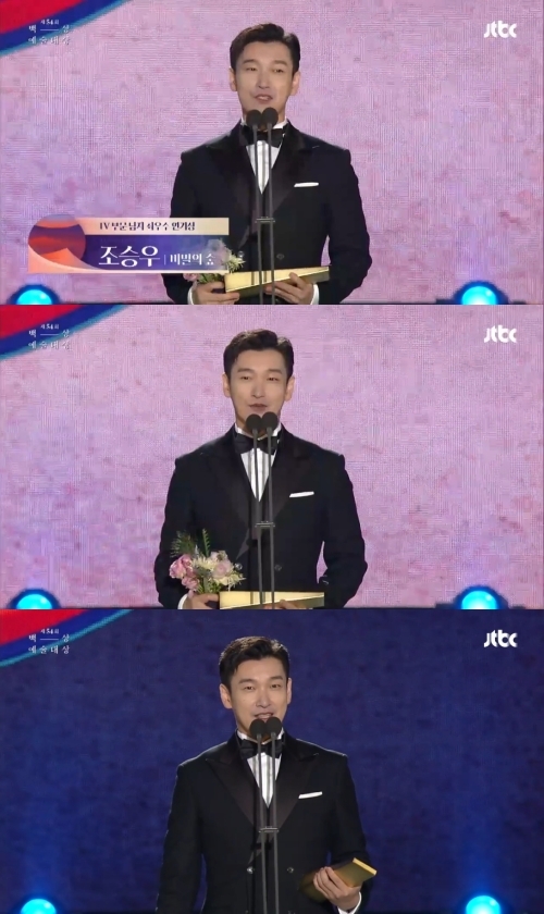 조승우는 지난 3일 오후 9시 30분 서울 삼성동 코엑스 D홀에서 열린 제54회 백상예술대상 시상식에서 tvN 드라마 '비밀의 숲'으로 TV 부문 남자 최우수연기상을 받았다.