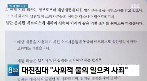 또 "만약에 어린 아이가 그 침대에 누워 있다고 하면 심각한 문제를 일으킬 수 있다"고 밝혔다.