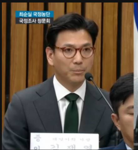2016년 12월 7일 당시 김재열 제일기획 사장이 최순실씨 2차 청문회에 나와 동계스포츠영재센터와 관련된 의원들의 질문에 답하고 있다. 사진=SBS 캡처