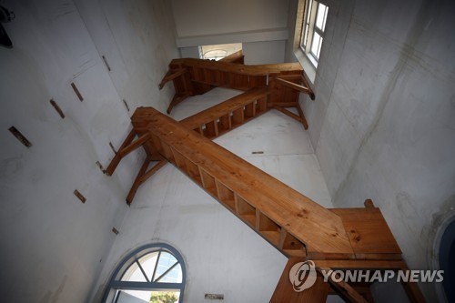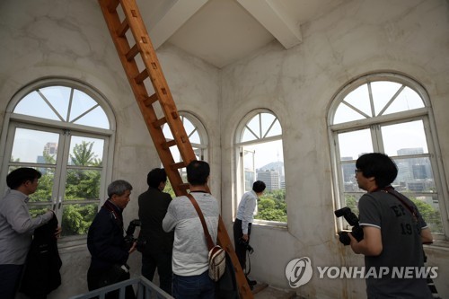1973년 이후 외부에 열리지 않은 서울 정동의 구(舊) 러시아공사관 첨탑 내부가 45년 만에 언론에 공개됐다.