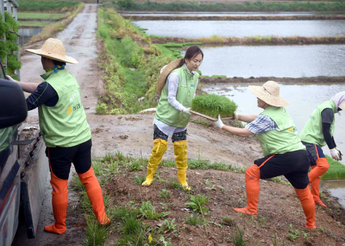 올해로 창립 23주년을 맞이한 농협유통은 농번기에 일손이 부족한 농촌마을을 돕고자 임직원 20여명이 1사1촌 자매결연을 맺은 조금리마을에 방문하여 모판 나르기, 마을 정화작업 등 농가를 도우며 구슬땀을 흘렸다.