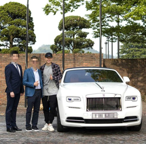 공개된 사진에는 손흥민이 4억 원에 달하는 고가의 외제차 롤스로이스를 탑승하고 있다.