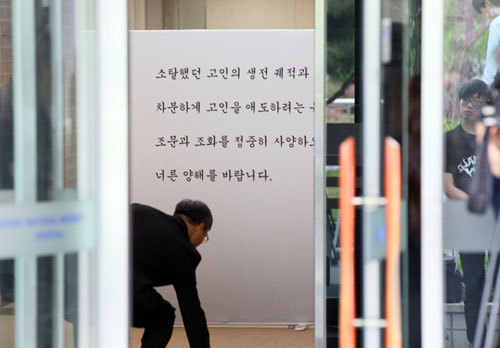| 구본무 LG그룹 회장이 별세한 20일 오후 서울 대학로 서울대병원 장례식장에 마련된 빈소에 관계자들이 빈소를 준비하고 있다. 유족 측은 조용하고 간소하게 장례를 치르기를 원했던 고인의 유지와 유족의 뜻에 따라 비공개로 가족장을 치르기로 했다. 사진=연합뉴스 |