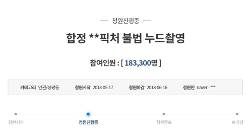 해당 청원의 제목은 '합정 원스픽쳐 불법 누드촬영'이었다. 현재는 '합정 **픽처 불법 누드촬영'으로 변경된 상황(위 사진).