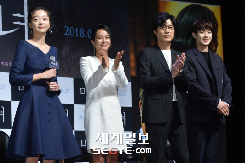 [포토] 영화 '마녀' 출연진 한자리에 입력 : 2018-06-08 11:20:28 수정 : 2018-06-08 11:20:26 구글 네이버 유튜브 배우 김다미, 조민수, 박희순, 최우식(사진 왼쪽부터)이 8일 오후 서울 압구정 CGV에서 열린 영화 '마녀'의 제작보고회에 참석해 포즈를 취하고 있다. 한윤종 기자 hyj0709@segye.com Copyright ⓒ 세계일보. 무단 전재 및 재배포 금지 세계닷컴 한윤종