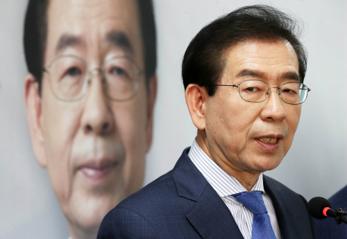 | 박원순 더불어민주당 서울시장 후보가 제7회 전국동시지방선거를 하루 앞둔 12일 오전 서울 종로구 안국빌딩에 마련된 캠프에서 기자회견을 하고 있다. |