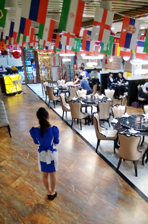| 고려거리의 북한식당 지난 14일 정오 무렵 찾은 단둥시내 고려거리 인근의 북한 식당. 북한 여종업원들이 손님을 맞이하느라 분주하다. |