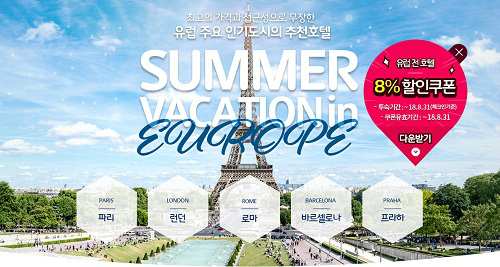 이어 “현재 유럽여행을 계획 중이라면 ‘유럽 8% 통큰할인 기획전’을 통해 저렴한 비용으로 호텔을 예약하고 즐거운 해외여행을 만끽하길 바란다”고 전했다.