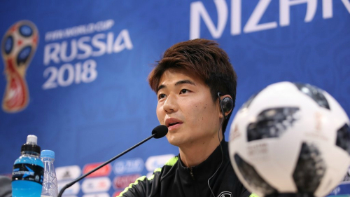 2018 러시아 월드컵 F조 조별리그 1차전 스웨덴전을 하루 앞둔 17일 오후(현지시간) 러시아 니즈니 노브고로드 경기장에서 열린 공식 기자회견에서 대한민국 축구대표팀 주장 기성용이 취재진 질문에 답하고 있다. 사진=연합뉴스