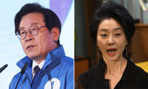 | 이재명 경기도지사 당선인(왼쪽)과 배우 김부선씨 |
