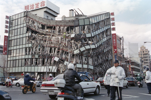 | 1995년 발생한 최대 진도 7의 지진으로 무너진 일본 효고현 고베시의 한 건물. 세계일보 자료사진 |