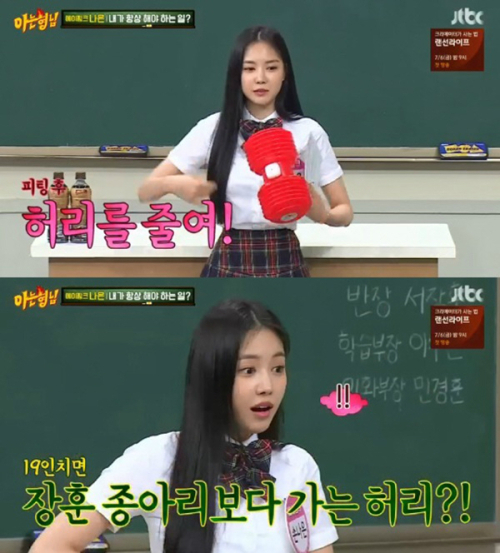 손나은은 이 자리에서 허리 사이즈를 측정했고, 옷 입은 상태에서 21인치임이 확인됐다.