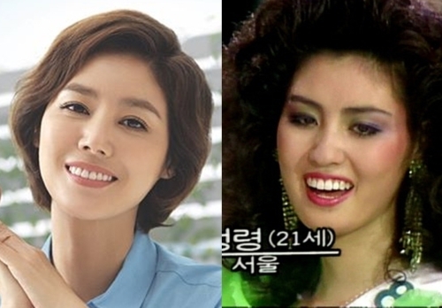 김성령은 원래 1987년도 미스코리아 대회에 출전할 예정이었다고. 그런데 당시 장윤정(왼쪽 사진)이 우승할 것 같다는 소문이 돌았고 김성령은 장윤정과의 경쟁을 피해 대회 출전을 미뤘다.