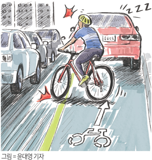 종로 자전거전용차로는 광화문 사거리부터 종로 6가까지 총 2.6㎞다. 이 구간에는 버스중앙차로도 있어 운전자들이 버스중앙차로와 자전거전용차로 사이를 지나게 된다. 이 때문에 승객이나 화물을 승하차시키는 택시, 오토바이 등이 자전거전용차로에 침범하는 일이 잦다.