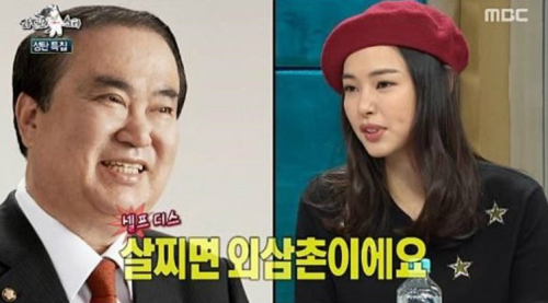 문 의장은 미스코리아 출신 탤런트 이하늬의 외삼촌으로 유명하다. 지난해 11월 23일 방송된 MBC예능 프로그램 '라디오스타'에 출연한 이하늬(아래 오른쪽 사진)가 "내가 살이 찌면 외삼촌 닮았다"라고 말해 화제가 되기도 했다.