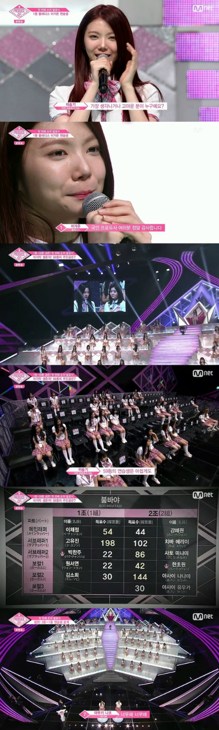 연습생 이가은이 ‘프로듀스48’의 첫번째 순위 발표식에서 1등에 이름을 올렸다.