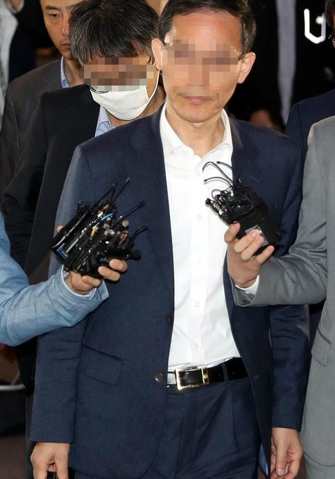 | 드루킹이 김경수 경남지사에게 '오사카 총영사'로 추천한 것으로 알려진 도모 변호사(앞)가 17일 오전 허익범 특검팀에 의해 긴급체포 됐다. 사진은 지난 5월 3일 경찰 소환조사에 나올 때 모습. 뉴시스 |