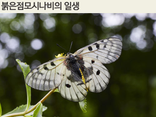 이 중에서도 붉은점모시나비의 여름잠은 특별한 구석이 있다. 하면(夏眠)하는 동물이 대체로 열대나 아열대에 사는 것과 달리 추운 곳을 좋아하는 한지성 동물이라는 점, 한여름 뜨거운 열기만 잠깐 피하는 게 아니라 추워져야 비로소 끝나는 ‘궁극의 여름잠’이라는 점이 그렇다.