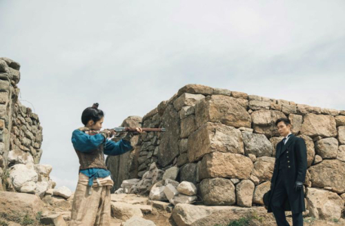 | 김태리(왼쪽)가 이병헌에게 총을 겨누고 있는 극중 모습. |