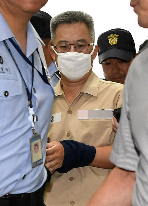 | 마스크를 쓴 ‘드루킹’ 김동원씨가 31일 서울 서초구 허익범 특별검사팀 사무실로 소환되고 있다. 허정호 선임기자 |