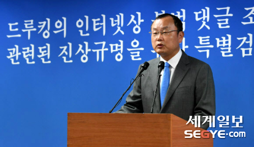 | 3일 오후 허익범 특검팀 박상융 특검보가 김경수 경남지사를 오는 6일 오전 피의자 신분으로 소환조사한다는 사실을 알리고 있다. 남정탁 기자 |