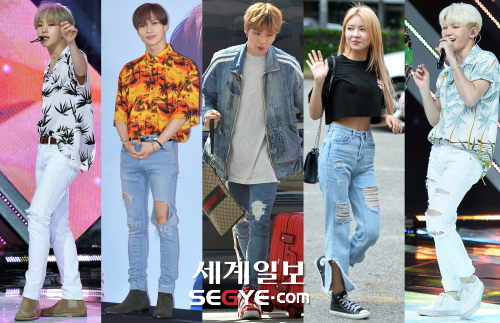아이돌그룹 워너원의 강다니엘부터 세븐틴 멤버들까지, 기록적인 폭염 속 아이돌 스타의 ‘찢청 패션’이 팬들의 눈길을 끌고 있다.