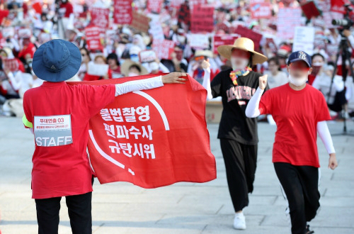 | 지난 4일 광화문에 모인 ‘몰카 수사 규탄’ 시위대. 뉴시스 |